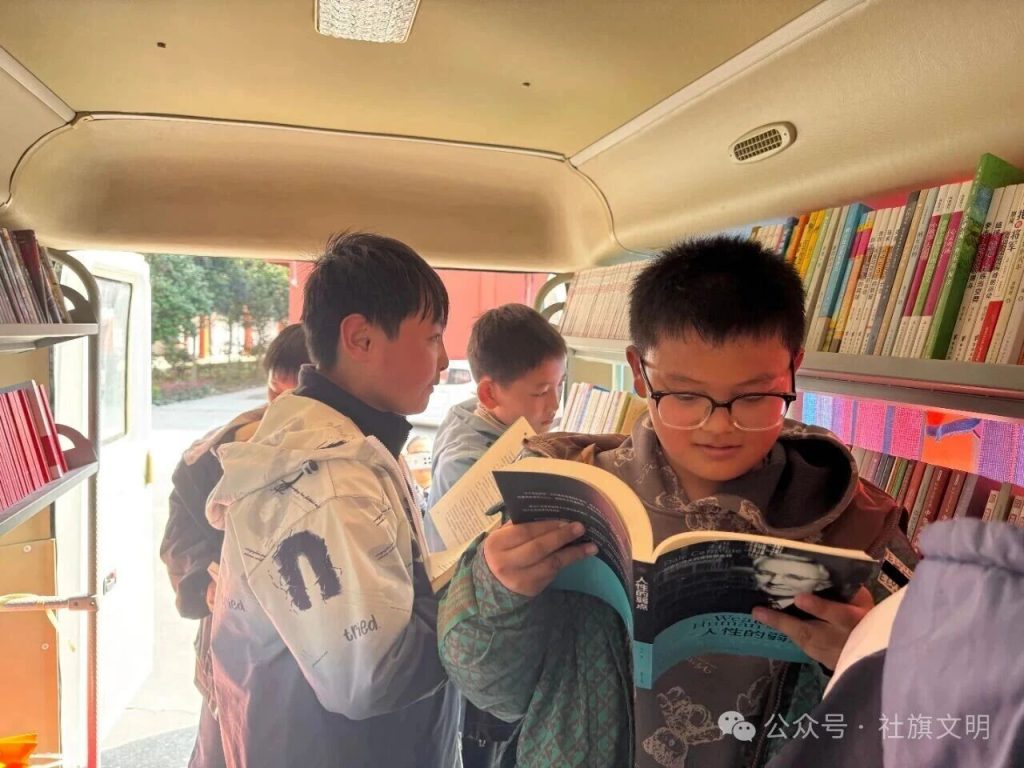 书桌旁被孩子们围得水泄不通,就连图书车里也站满了求知若渴的孩子们,孩子们的眼睛亮得像星星。有同学接过《昆虫记》时立刻和同伴分享:“我早就想看这个了!”;也有老师笑着说:“寄宿生在校时间长,这些书能丰富他们的课余生活,你们举办这样的活动真有意义。”