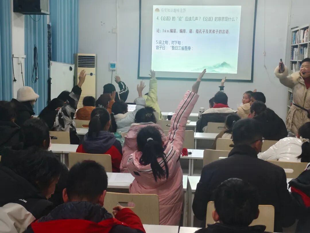 讲座在一阵阵掌声中画上了圆满的句号,孩子们积极回答问题也获得了老师的称赞和奖励,纷纷高兴的走上讲台合影留念,老师也提前给在座的孩子们送上了新年的祝福。 一部《论语》,中国人读了几千年。著名学者叶嘉莹曾说过:“此后数十年的人生路途中,无论遇到任何困惑或苦难,常常会有一两句《论语》中的话闪现出来,我往往就由此一两句话,得到了答案和解脱”。迷茫的时候,翻一翻《论语》的篇章,它能帮你找到勇气和方法;痛苦的时候,听一听孔子的智慧,它能给你带来希望与力量。