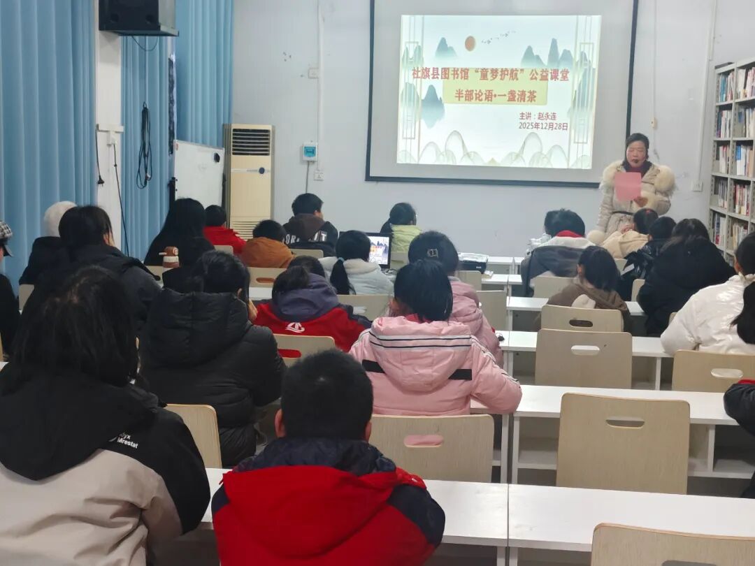 以书为伴,让阅读成为一种生活方式。为进一步促进父母和孩子之间的亲子关系,养成良好的沟通习惯,更好的保障孩子健康成长,社旗县图书馆免费开放项目“童梦护航”公益课堂专题讲座《半部论语•一盏清茶》于12月28日下午在图书馆三楼成功举办,主讲老师:赵永连。
