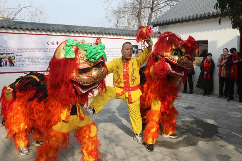 活动中,文艺爱好者们还带来了威风的舞狮、激昂的盘鼓、欢快的秧歌等传统非遗节目表演,引得村民们阵阵掌声。